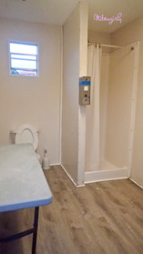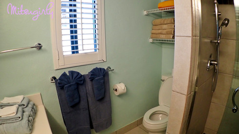 There were a few differences in our places (other than decor and color). Our "bedroom" was just a bunch of sliding panels with slats that went around the bed. Kendra's was panels that completely divided off her room from the living room. I had a dishwasher (and I wasn't referring to the hubby) and she did not. My bathroom shower had a small wall you step over, which was a tub if needed (all tiled) and hers did not. Other than that, it was pretty much the same.