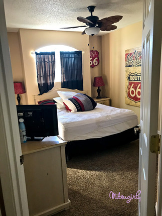 The second master bedroom was located upstairs and mimicked the bedroom above with different furniture.