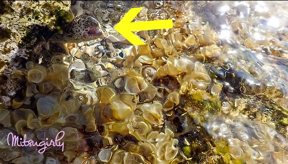 Sakari wanted to see if her eel friend was still in the rocks on the shore so she went over to have a look. Can you believe it was still there????
