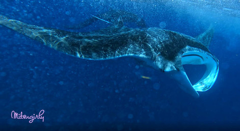 Manta Rays are harmless and do not have a stinger like their cousins the sting rays. If they feel in danger, they will simply race away from the scene.