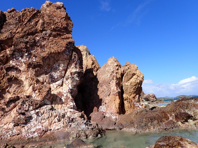 Now we were told that motorized boats were not allowed in the mangroves. This little island was not IN the mangroves but it made me wonder how they got there. As you can see in the distance, the waves are breaking over a bunch of rocks. There was no way in that way for sure.