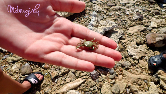 Sakari found a small baby crab. It was so cute. She showed it around to everyone.