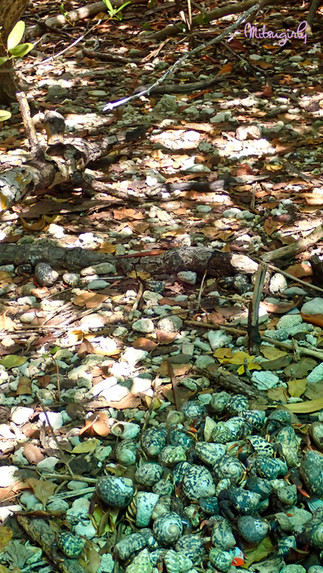 So now we were off to explore the island. We started following a trail and before long, we came across an area that had this really weird sound. Almost like a clicking sound. Swish tells us to look around and we noticed the ground was moving. Wait, that's not the ground, that's the ground covered in hermit crabs! Whoa! There were so many of them. Swish would tell us that the are all over the island. He would later give us facts about them. They are scavengers and will eat anything. He said they dropped a 250+ pound pig on the island and the hermit crabs ate it all within 2 weeks or something like that. That included the bones and all. There was no evidence that the pig was ever there.