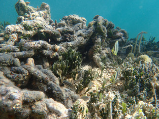 Then Sakari yells "There's the shark again!" I ducked down and I SEEN IT! It was super fast swimming and I wasn't even able to get situated enough to take a picture. It was just too fast! It was definitely NOT a nurse shark. OMG, we seen a shark! It was a Reef Shark according to Swish and the way it looked. He had told us they could possibly be in the area before we started to snorkel and I remember saying "Nope, don't want to run across one of those either!" "No Barracuda, no Reef Shark!" But don't you know I was the first to try to get over there to see it? Of course I had no idea that's what it was but should have know by how fast it was swimming and going back and forth.