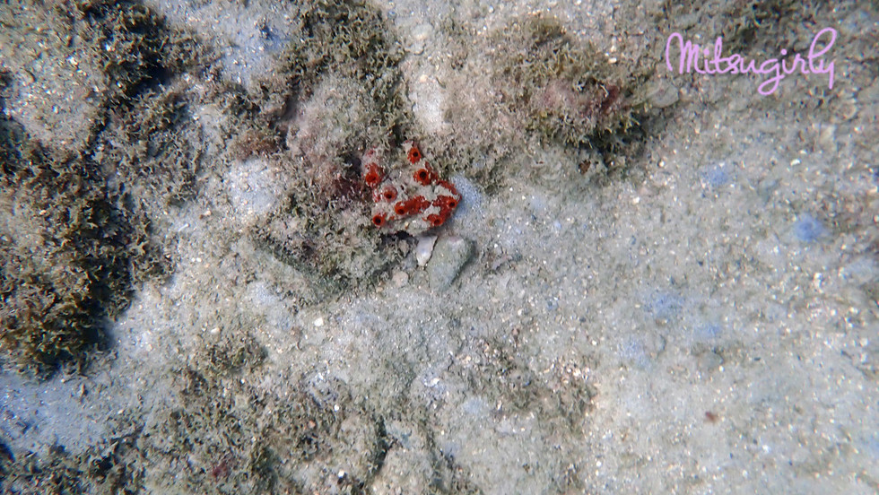 There was an Arrow Crab next to it. She came up and grabbed the camera because she is the pro at diving down and STAYING down long enough to take a picture. I just float right back up to the surface when I try and can't stay down long enough.