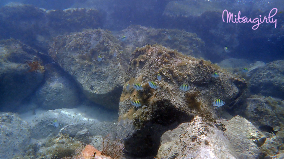 I went up and down the rocks. I spotted Grunts, various small Damsel fish but nothing exciting.