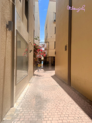 I knew there was supposed to be a lot of painted artwork on the buildings and Sakari is always game for some shopping. Karl always likes to buy his sister something when on vacation so it sounded like the perfect thing to do. That was until I got caught on the very small one way street of no return that I could seem to get out of. We drove and drove with no place to park or turn off until you get to the end of the area. But, eventually we would find a parking spot after getting out of this maze. Whew! I marked my parking spot on my phone and off we went to explore...in the heat. 🥵