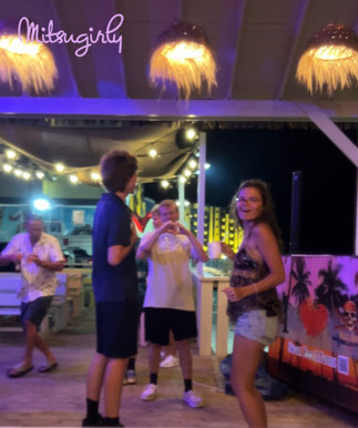 There was an area in front of the DJ and a group of guys were out there dancing. One of them was the life of the party and would pull anyone up to dance that he could...young and old, it didn't matter. He knew the words to every song played. He attempted to get Karl and Sakari out....and eventually it happened. Sakari said this guy reminded her of someone her brother Kolin would hang out with. He was goofy and constantly smiling and so energetic. Sakari tried to get the DJ to play the Cupid Shuffle and can you believe he had never heard of it???? Who doesn't know what the Cupid Shuffle is? So she told him to play a boy band song (we were hoping for a little NSYNC Bye Bye Bye since the kids had learned that dance on the cruise ship but it didn't happen). They ended up playing Backstreet Boys "I Want it That Way"