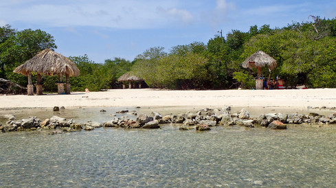 Mangel Halto is kind of an "odd" beach. The sand and beachy area that you stay at is kind of in the middle of lush mangroves and trees and you really don't see much of the water from the middle. You have to go down into the water, between the mangroves to get out to the open area. They do have some palapas there to use, but there's not many and they are usually occupied by families that obviously get there pretty early.