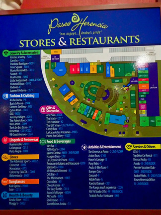 Paseo Herencia is an old village style plaza surrounded by great shopping, dining and a state of the art cinema featuring nightly liquid fireworks shows and musical performances against a backdrop of a unique blend of Aruban architectural designs and an expose of Aruban Heritage. Paseo Herencia is located in the area of Palm Beach, just walking distance from the high rise hotels.