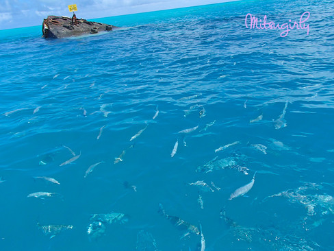 I had read prior to going that the fish in this area knew when people come and they come out in herds. At soon as we stopped...they all started swimming toward us.