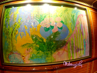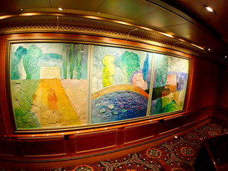 The Sunflower Atrium: This atrium is located outside of the Monet Dining Room at the back of the ship. I absolutely loved it. Very beautiful. It was a lit up blowing Van Gogh Sunflower.