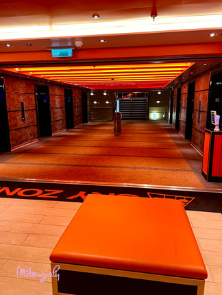 The kids looked like they were sleeping just too peaceful so I had to do what any bored mother would do...tickle their feet and wake them up! I ask them if they wanted to go to the Sky Zone and check it out. They agreed and I booked them a spot for 6:30pm. The Sky Zone is an indoor trampoline park in the middle of the ship on Deck 7. The cost is $15 per person if you go during the day. (I believe it is $18 at night)
