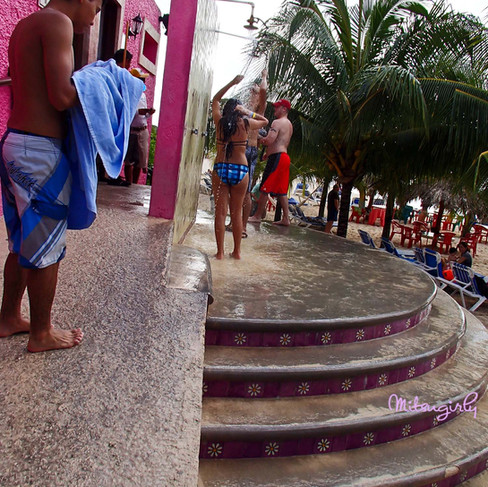 I wanted to take a picture of the beach line. When we went to Nachi Cocom, we did not care for the beach part at all. It was pretty, but it was so hard to walk in when we were there. Plus there was a bit of a dip in the water, which got a little too deep too quickly for my taste with Sakari being so little.