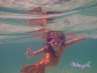 Everyone knows what the first thing Sakari does...head to the beach. We can't even get our things put down before she's stripped and running to the water. It would be the very first time she would get to try out her Mermaid tail and she was ready. I was not.