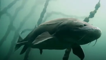 A really large catfish swimming above us: