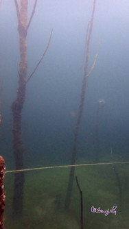 Heading into the Enchanted Forest. I found this area to be somewhat neat. Winding our way around all the trees. It looked gloomy and the weird thing was it was FOGGY. You could see the "fog" floating in the area and it was so cool to see. (Although it isn't really fog but I was later told by the dive shop that it was the silt that had been kicked up and as it settles back down it creates the look of fog drifting by so slow you can't tell it's falling). Just such a cool thing to see.