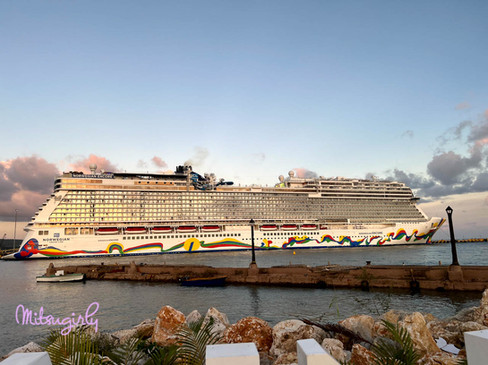The ship off in the distance. There are some great opportunities to get pictures of her sitting out there in all her beauty while you are at this port.