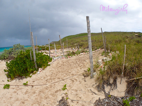 There was a huge pile of conch shells. We managed to find a lizard in them (look closely).