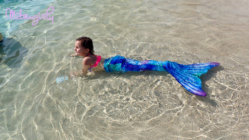 Immediately Sakari was ready to morph into a mermaid and daddy was ready to carry her down. I'm not sure why this cruise she all of a sudden decided that putting on her tail up on the beach and being carried down was going to happen every time. Usually, she just walks down to the water and puts it on herself and goes out.