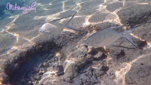 I squealed with excitement only to pop up out of the water to notice that Sakari had decided to swim back to shore and hang out with Brayden. She was missing it! I'm always in search for eels. They are so cool to watch. I had noticed this entire snorkel adventure that these eels hang out with one of these black fish. Every time I would see one of these black fishes acting like they were protecting something around a hole, there would be an eel. What type of relationship do they have? Are they like the watchman goby that protects the blind pistol shrimp in home saltwater tanks? They are an odd pair and the pistol shrimp is blind and digs a hole and works non-stop while the watchman goby stays outside and protects it. The goby lets the shrimp know if danger is approaching and they are never far apart. The shrimp reaches its antennas out to make sure the goby is there. So fun to watch. Maybe this fish and eel have the same relationship.