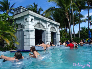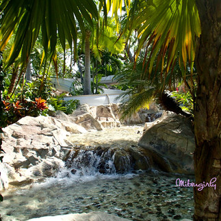 I decided the first thing I wanted to do was float down the lazy river. My husband knew that this place had wifi and today was the 18th. You see the 18th was his "dead line" for his customers to get orders in, respond to pre-orders, and it had to be done by today in order for shipment to arrive by Christmas. He hadn't been in contact with his distributors since Sunday and he knew his email would be blown up. So, he decided to take the computer we brought with us and head back to the hotel and find the wifi spot to play catch up. Away he went and away Sakari and I went into the pool. I snapped pictures as we floated along. It was such a beautiful day. There was various places to get out along the way. Simply breathtaking. Still floating along the lazy river I seen there were different ways to go, which go around little islands. You could also get chairs right by the lazy river in different spots. They were pretty neat areas.