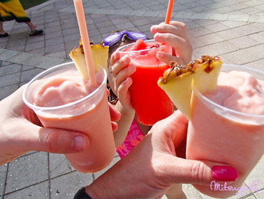 We walked back to a little grill shack that we had went to in order to get drinks off and on during the day and ordered some food and I ordered a drink while I was waiting for my food. I ended up ordering the pulled chicken with fries and an order of fried conch balls. Sakari had chicken fingers and fries. Of course I needed another drink to go...in order to cool me off because at this point I'm getting really hot and it's not the weather.