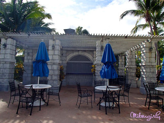 We put our things down right beside a pretty fountain. It was along a walkway and the pool/lazy river was in front of us. There were streams everywhere on the property in this area. It was definitely going to be a beautiful day....or was it? The landscaping was out of this world and I loved every bit of it. So many places to explore.