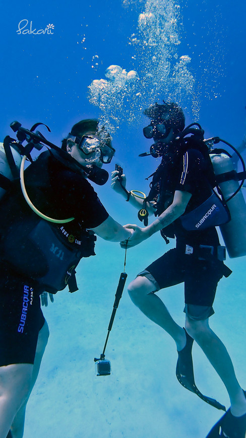We made it to the top and she ask how the dive was. My first reply was "WHY WERE WE JUST FLOATING THERE FOR SO LONG????" She said when divers go diving, on the way up, they have to take a "time out" for 3-5 minutes to do a safety stop. I guess this is done at 15 feet/5 meters. Why has this NEVER happened to us during a dive before? It didn't happen to the other diver that was with the male instructor. Why were we made to do this? My leg was super sore at that time for not trying to rest or float along like when we are actually doing the dive. She told us we did great at keeping our buoyancy for not being certified divers, but still...was this necessary? We know the rules of not going up to quick and what it can do to your body and lungs. We weren't sprinting toward the top. It was a slow ascend. Until the abrupt stop when she grabbed us and had us hold hands. I was just glad to be at the top to inflate our bcd and just float and rest.