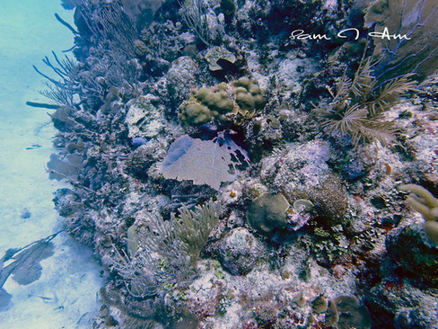 I have to admit, I was pleasantly surprised at what it looked like down there. The coral was abundant and it really was pretty. However, there really wasn't a lot of fish or schools of fish or what I consider the "odd" fish (anything other than the damsels, squirrels, wrasse, grunts or yellowtail snappers). I like to see the groupers, schools of surgeons, triggers, puffers, eels, flounders, big angels and butterflies ....anything you don't normally see just snorkeling. But, it was pretty. I did manage to catch a trunkfish when we first started but the hubby didn't get a picture of it and I did see a four-eyed butterfly fish as well. There was a really pretty yellow and black wrasse and I did see what I think was a smaller spotted grouper at one point scurry into a hole. (All in the video). But most of the fish were juvenile fish and not very big. There were a lot of smaller parrot fish too.