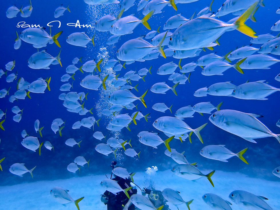 We were coming to the end of our dive and all of a sudden we look up in the distance and see a swarm of fish together. There were A LOT! They were swimming together in circles. Now I have seen pictures and videos that have been captured of fish doing this and it always amazed me. This time would be our time. We have never seen this before and I was in awe!