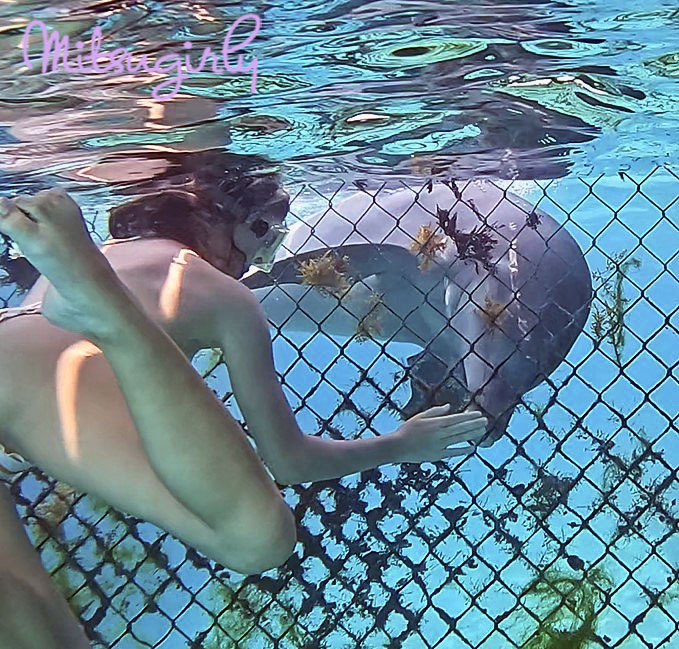 Then one of the dolphins came over and put its body against the fence and let her pet it. It was rubbing against the fence like a cat rubs against a humans legs. She was absolutely loving it! It stayed for quite some time. I'm catching it all on video...or was I? OF COURSE NOT! I thought it was on and it wasn't. Darnit!!! I always seem to screw up the most important parts.