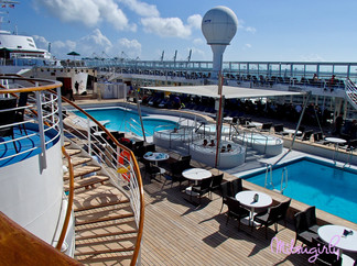The seating was pretty much the same as on the Sun. They had the regular round chairs and the couch chairs and tables in front of you to put your drinks and such. It was just a little more elegant looking to me.