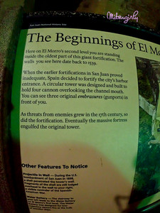Castillo San Felipe del Morro is a 16th century fort that began construction in 1539 with it's main purpose to defend the port of San Juan by controlling entry to the harbor. Its present look was completed around the 1780's. It consisted of 450 cannons. The outer walls were originally 6 feet thick and by the end of the 18th century, they were 18 feet thick. The city walls surrounding OSJ took 48 years to build. El Morro has 6 levels and is 145 feet tall. El Morro takes up over 70 acres.