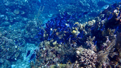 It was a school of blue tangs. So pretty. I love when we see these swimming together like this.