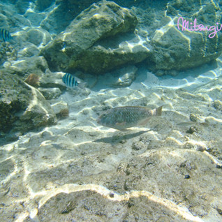 She is so good at holding her breath for such a long period of time. I think she can probably hold hers longer than me. I can't wait until her gets big enough to get an actual snorkel in her small mouth to be able to learn how to use it and snorkel for long periods of time. She goes snorkeling with us every where we go and usually goes out when we are at the reefs. She was perfectly happy snorkeling around the rocks to the right of the beach and she remained there most of the day.